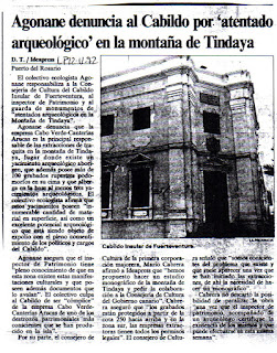 Al bueno de Mario le pasó con Tindaya lo que a Chillida. El artista quiso trascender y quedarse perpetuado eternamente superando a la propia naturaleza. Y Mario Cabrera ha soñado, desde que el artista vasco apareció por estos tableros, con que a él se le recuerde como el supremo valedor de una obra que -son sus palabras- “coloque a Fuerteventura en el mapa”. Ya nos habíamos acostumbrado a que Mario Cabrera, como buen político profesional, mintiera una y otra vez con el asunto de Tindaya. Su mentira más común -que ha vuelto a repetir hace unos días- es que los defensores de Tindaya no hicieron nada contra las canteras antes de la llegada de Chillida. Mario piensa que repetir esa mentira terminará por convertirla en verdad. Pero como las hemerotecas existen, dejamos aquí un par de noticias (de antes de que el gran genio nos visitara) a ver si hay suerte y el hombre deja de repetirse tanto como el mojo subido de ajo.